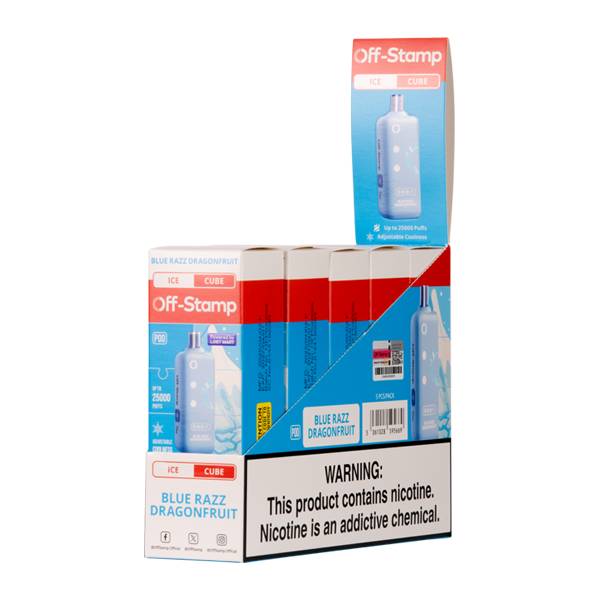 Experience the ultimate vaping sensation with the Off Stamp Ice Cube Disposable Pod in Blue Razz Dragonfruit flavor. This innovative disposable pod combines refreshing icy notes with a unique blend of sweet blue raspberry and exotic dragon fruit, delivering a perfectly balanced taste profile.
