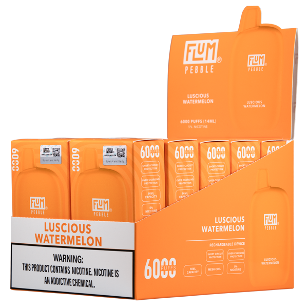 Experience the ultimate vaping satisfaction with the Flum Pebble Disposable Vape in Luscious Watermelon flavor. This premium disposable vape pen delivers a consistently smooth and flavorful experience from the first puff to the last.