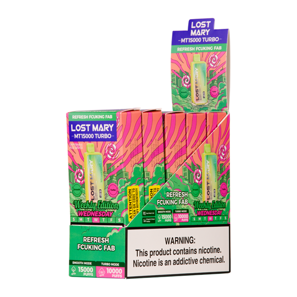 Experience the ultimate vaping satisfaction with the Lost Mary MT15000 Turbo disposable vape. Featuring the refreshing Refresh Fcuking Fab flavor, this device combines premium performance with long-lasting enjoyment. Perfect for both new and experienced vapers seeking convenience and quality.